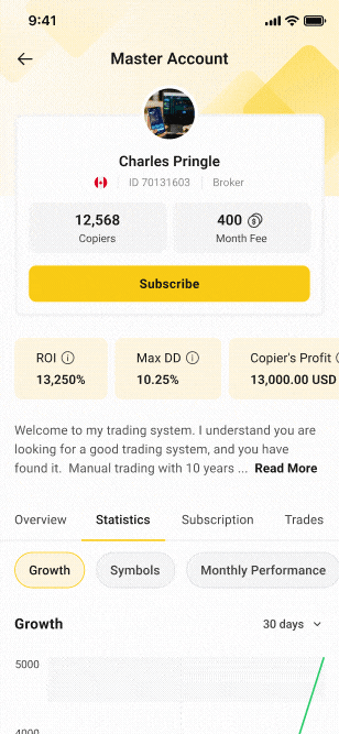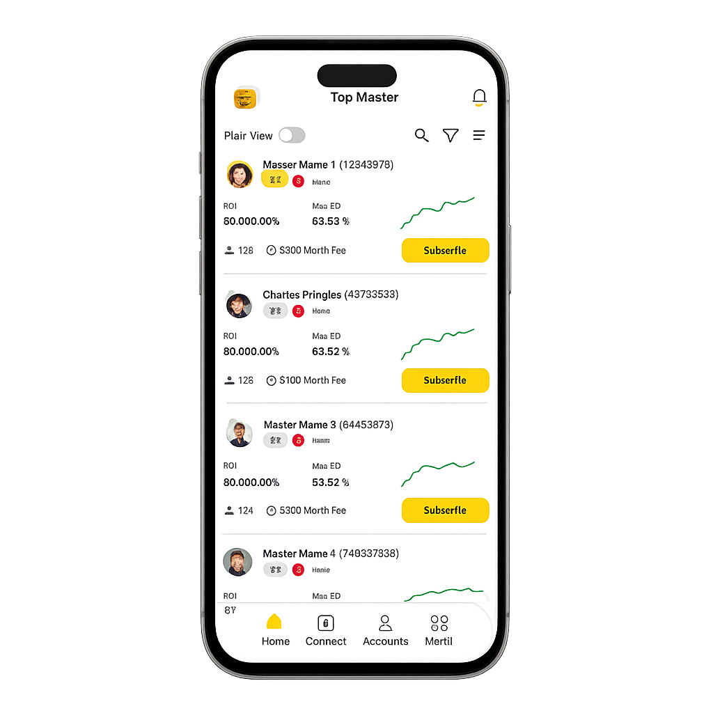 Master traders have the opportunity to generate income through subscriptions from Copiers, which include both Monthly and Profit Share options.