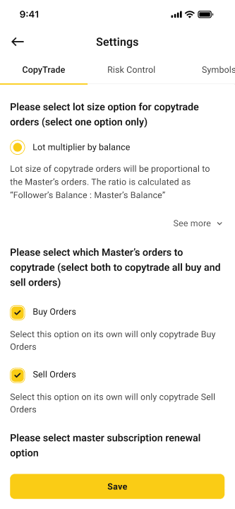 A full range of copy trade features for you to choose the right method.